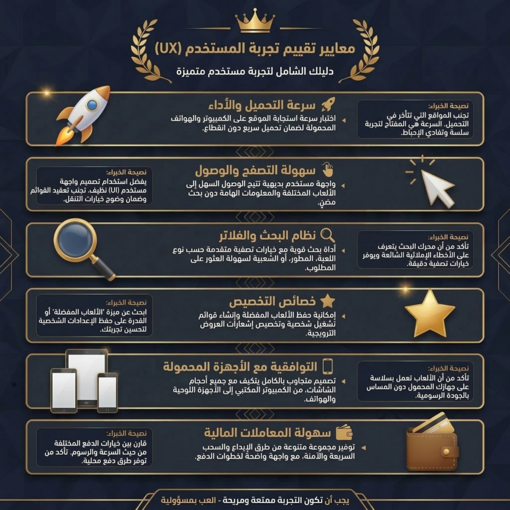 أراقب مستوى التخصيص المتاح، مثل حفظ الألعاب المفضلة أو اقتراح ألعاب مشابهة، فهذه التفاصيل الصغيرة تصنع تجربة لعب اون لاين سلسة وأكثر راحة على المدى الطويل.